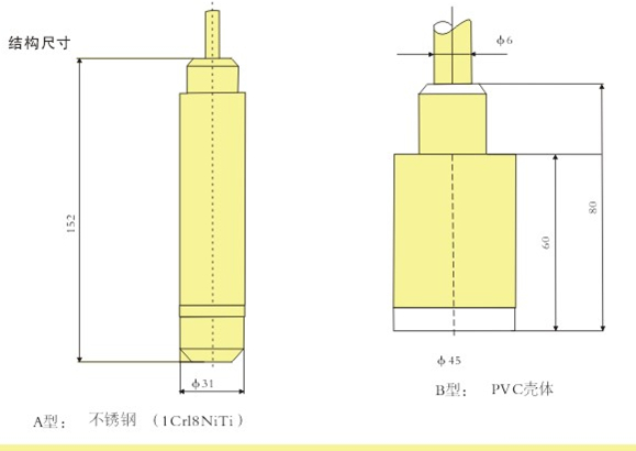 PT311型投入式液位變送器(也稱靜壓式液位變送器)選用進口帶防腐膜片敏感組件,將芯片裝入一個不銹鋼(或PVC)殼體內,頂部的鋼帽起保護傳感器膜片的作用,同時使液體流暢地接觸到膜片。該產品用特制的防水中空電纜使感壓膜片的背壓腔與大氣良好相通,測量液位不受外界大氣壓變化的影響,測量準確,長期穩定性好,并具有優良的密封及防腐性能,可直接投入水、油等液體中長期使用。PVC材料的外殼及電纜可測量多種防腐蝕性液體。