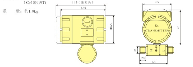安裝要求:變送器有Φ8寶塔頭或者M20×1.5外螺紋接口,可直接與被測現場的高(H),低(L)壓端聯接,無需安裝支架。